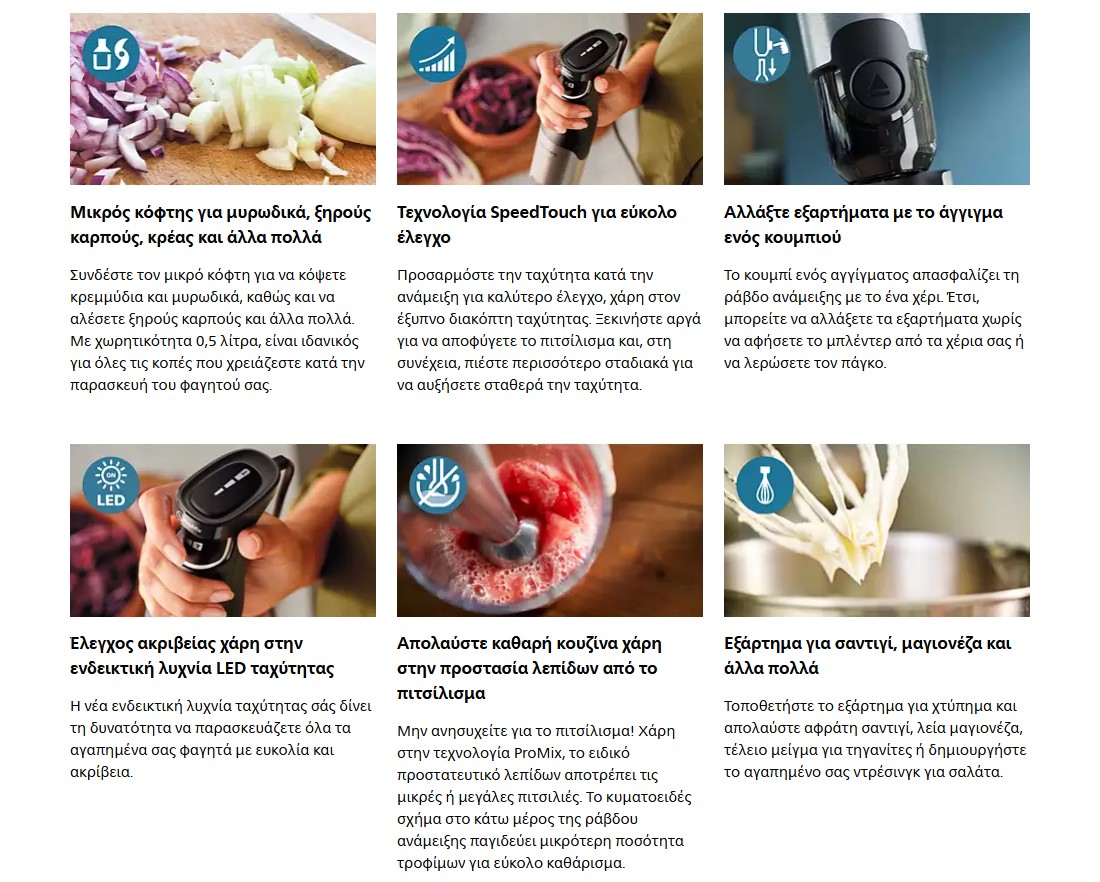 Λειτουργίες : Ανάμειξη, Χτύπημα, ψιλοκόψιμο