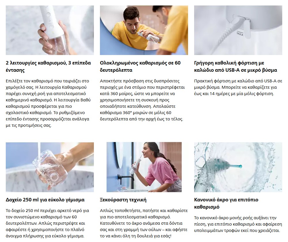 Καθάρισμα : Καθαρίζει ολόκληρο το στόμα σε 60-90 δευτερόλεπτα