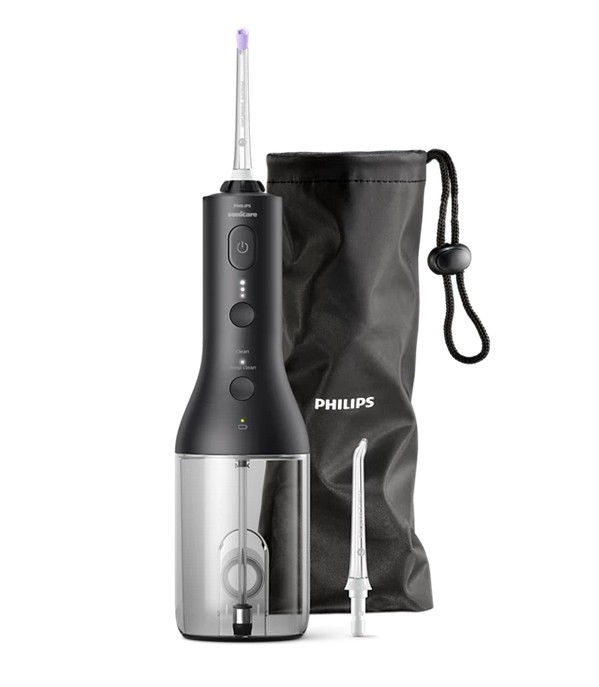 Περιλαμβάνεται : F1 Κανονικό στόμιο 1, F3 Στόμιο Quad Stream 1, Τσάντα ταξιδιού 1, Καλώδιο φόρτισης USB 1, Προσαρμογέας τοίχου USB 1, Ασύρματο Power Flosser Sonicare 1.