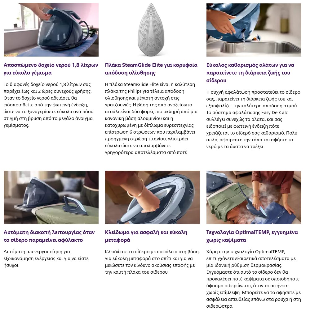 Η σειρά PerfectCare 7000 έχει σχεδιαστεί για να σας προσφέρει άνεση και πρακτικότητα. Διαθέτει σίδερο εξαιρετικά μικρού βάρους για άνετο χειρισμό, ενώ παρέχει ισχυρό ατμό για τέλεια και γρήγορα αποτελέσματα. Η τεχνολογία OptimalTEMP εγγυάται σιδέρωμα χωρίς καψίματα σε όλα τα ρούχα που σιδερώνονται.