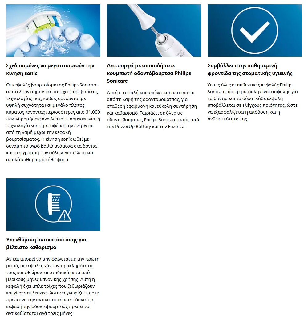 Κατάλληλη για αυτά τα μοντέλα : HealthyWhite+, Σειρά 2, έλεγχος της πλάκας, Σειρά 3, υγεία των ούλων, DiamondClean, EasyClean, FlexCare, FlexCare Platinum, FlexCare+, Για παιδιά, HealthyWhite.