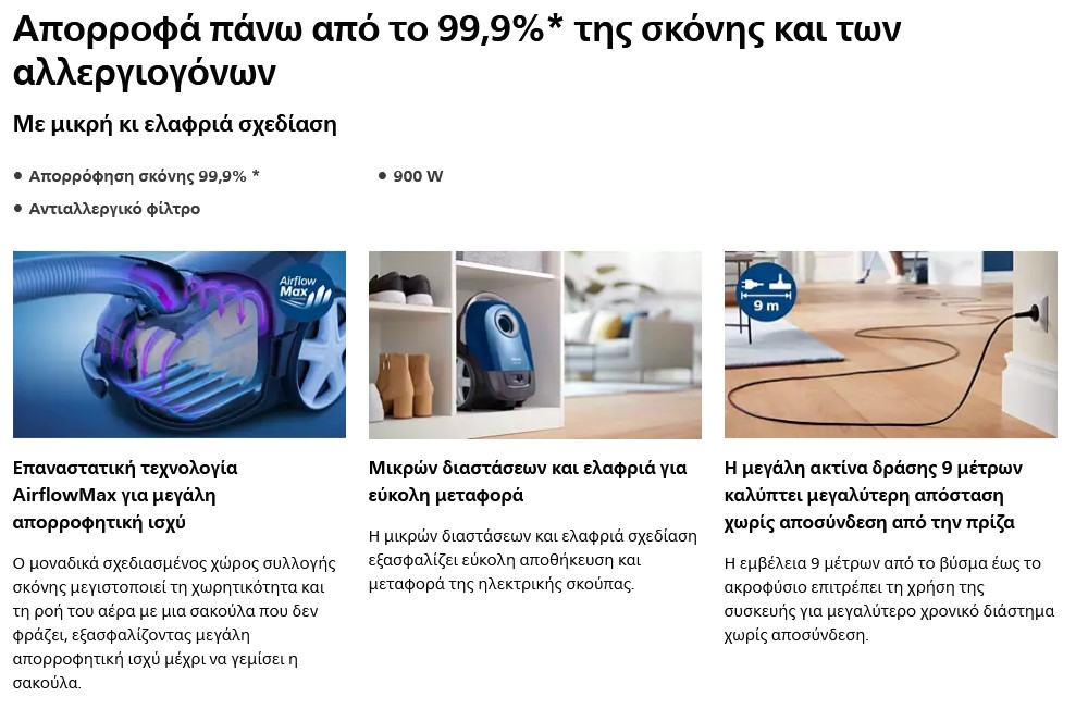 Με σακούλα 3 lt, τεχνολογία AirflowMax και πέλμα TriActive που συνδυάζει 3 δράσεις καθαρισμού σε 1 εξάρτημα.