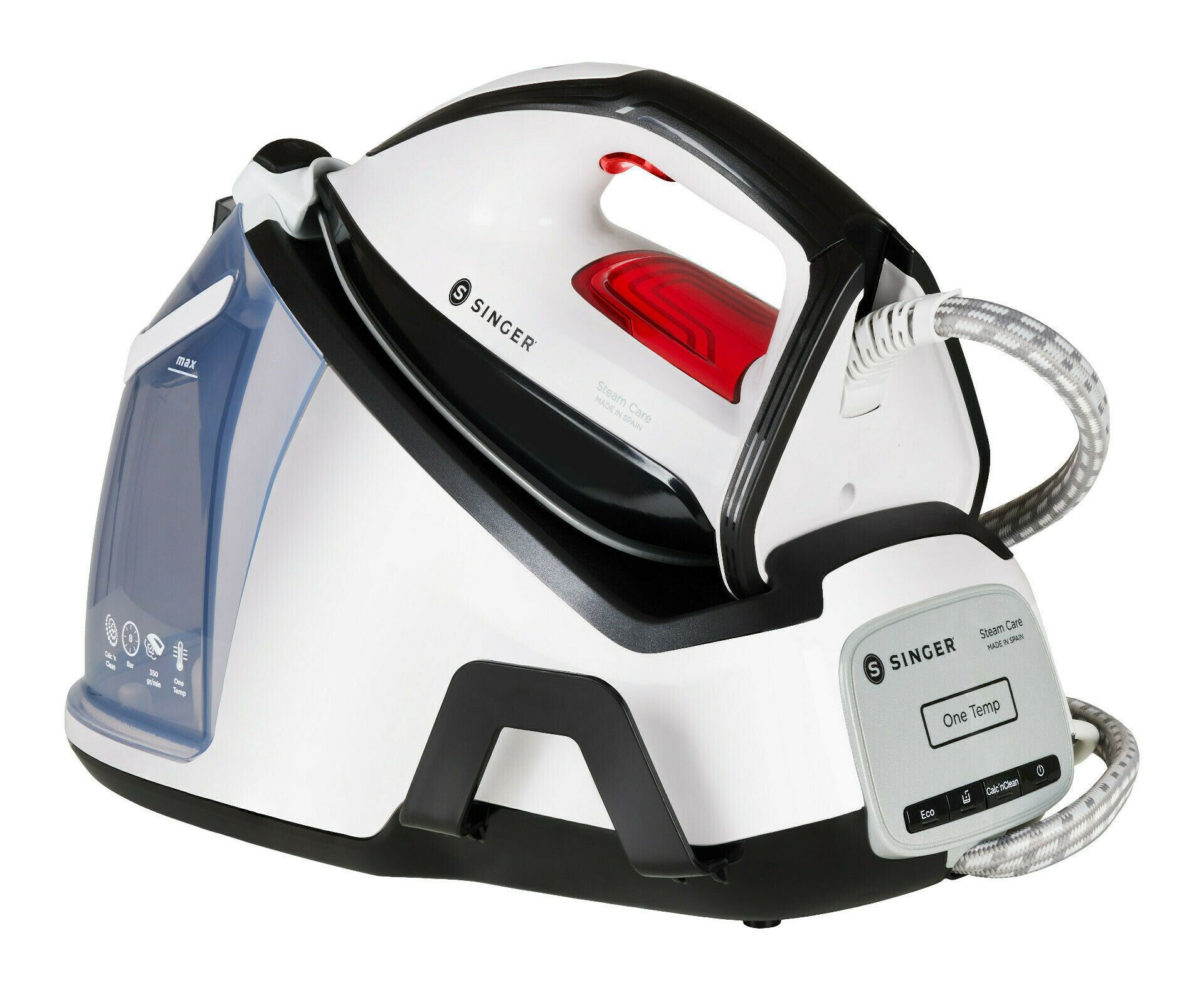 Αποτελεσματικό σύστημα καθαρισμού για την αφαίρεση των αλάτων με φωτεινή και ηχητική ένδειξη υπενθύμισης και Calc'n Clean δίσκος για την διαδικασία αφαλάτωσης. Το πλεονέκτημα είναι προφανές: αυτό θα παρατείνει σημαντικά τη διάρκεια ζωής του συστήματος σιδερώματος σας.