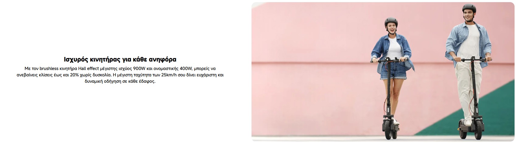 Μέγιστη ταχύτητα : 25 km/h (μέγιστη ταχύτητα για κάθε λειτουργία: Λειτουργία πεζών: 6 km/h, Τυπική λειτουργία: 15 km/h, Λειτουργία σπορ: 25 km/h)