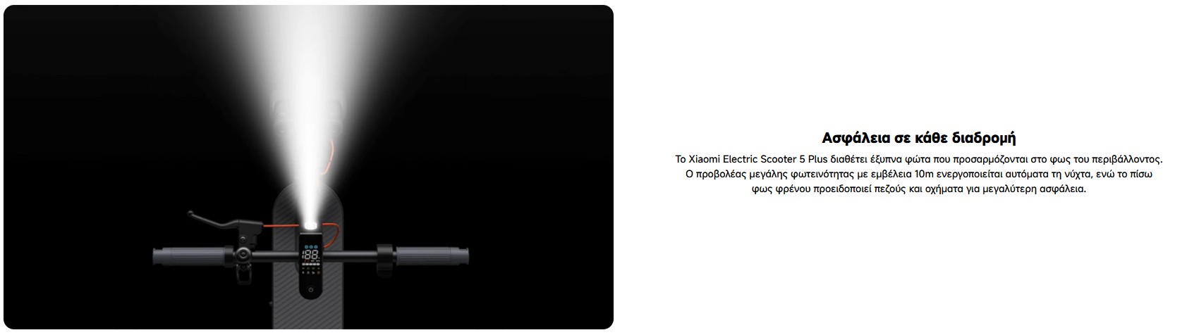 Περιεχόμενα συσκευασίας : Xiaomi Electric Scooter 5 Plus x1, Προσαρμογέας ρεύματος x1, Τιμόνι x1, Βίδες x7, Εγχειρίδιο χρήσης x1, Σημαντικές πληροφορίες x1, Εγχειρίδιο προδιαγραφών x1, Εγχειρίδιο προδιαγραφών απόδοσης μπαταρίας x1.
