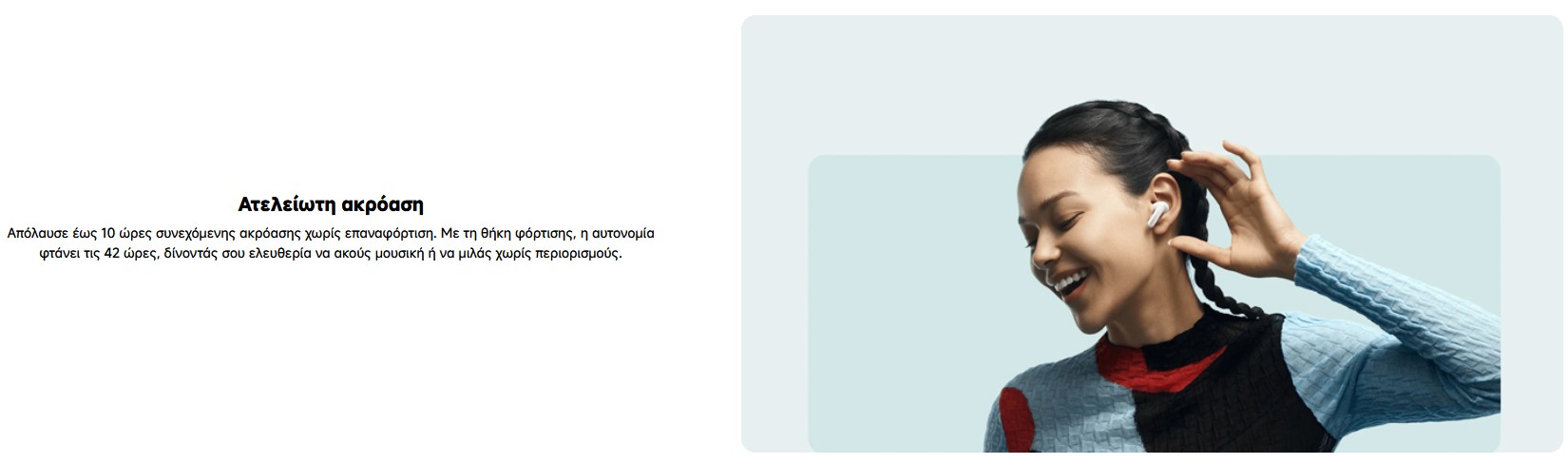 Η αυτονομία που φτάνει έως και 42 ώρες σου επιτρέπει να ακούς ασταμάτητα, ενώ η άνετη εφαρμογή τα καθιστά ιδανικά για κάθε στιγμή της ημέρας. Ισορροπία ήχου, άνεση και διάρκεια σε κάθε ακρόαση!