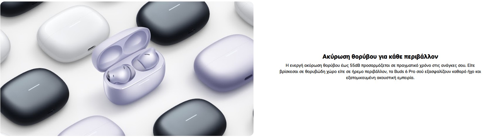 Ζήσε την απόλυτη εμπειρία ακρόασης με τα Redmi Buds 6 Pro. Με προηγμένη ενεργή ακύρωση θορύβου 55dB, απομονώνεσαι από κάθε εξωτερικό ήχο και απολαμβάνεις καθαρό, ανεμπόδιστο ήχο.