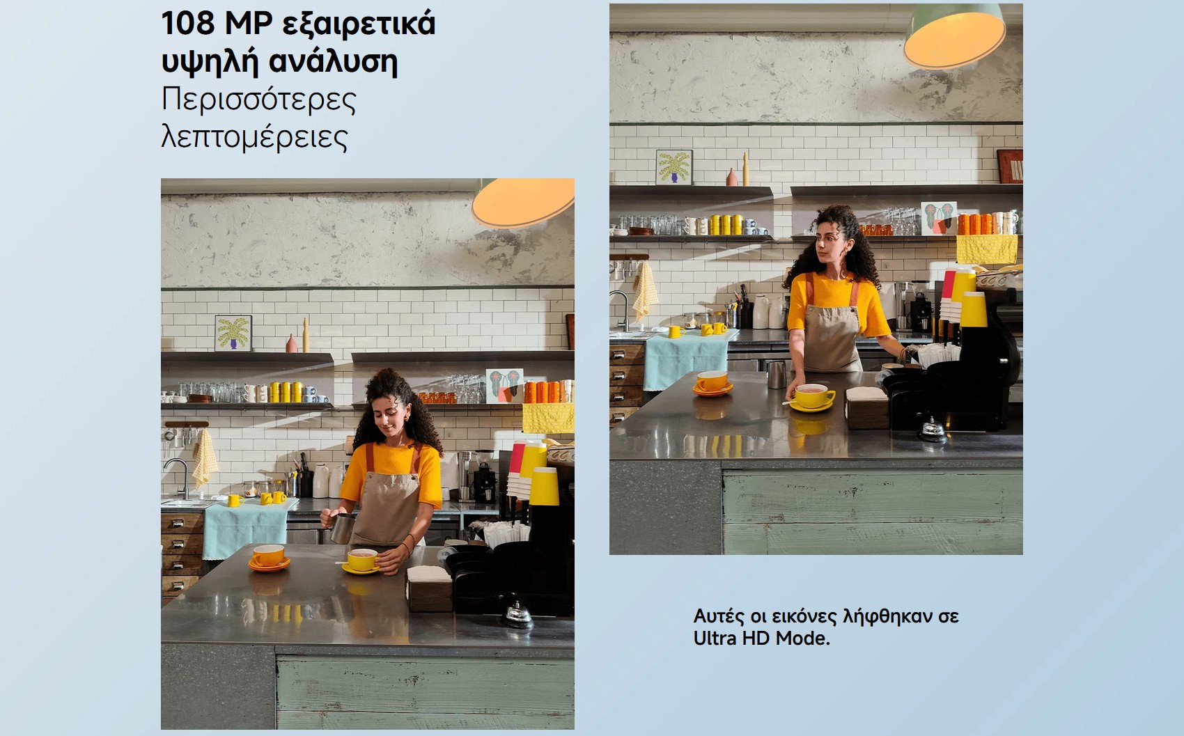 Πίσω Κάμερα : 108 MP, f/1.7, 24mm (wide), 1/1.67", 0.64΅m, PDAF, OIS 8 MP, f/2.2, 16mm (ultrawide), 1/4.0", 1.12΅m.