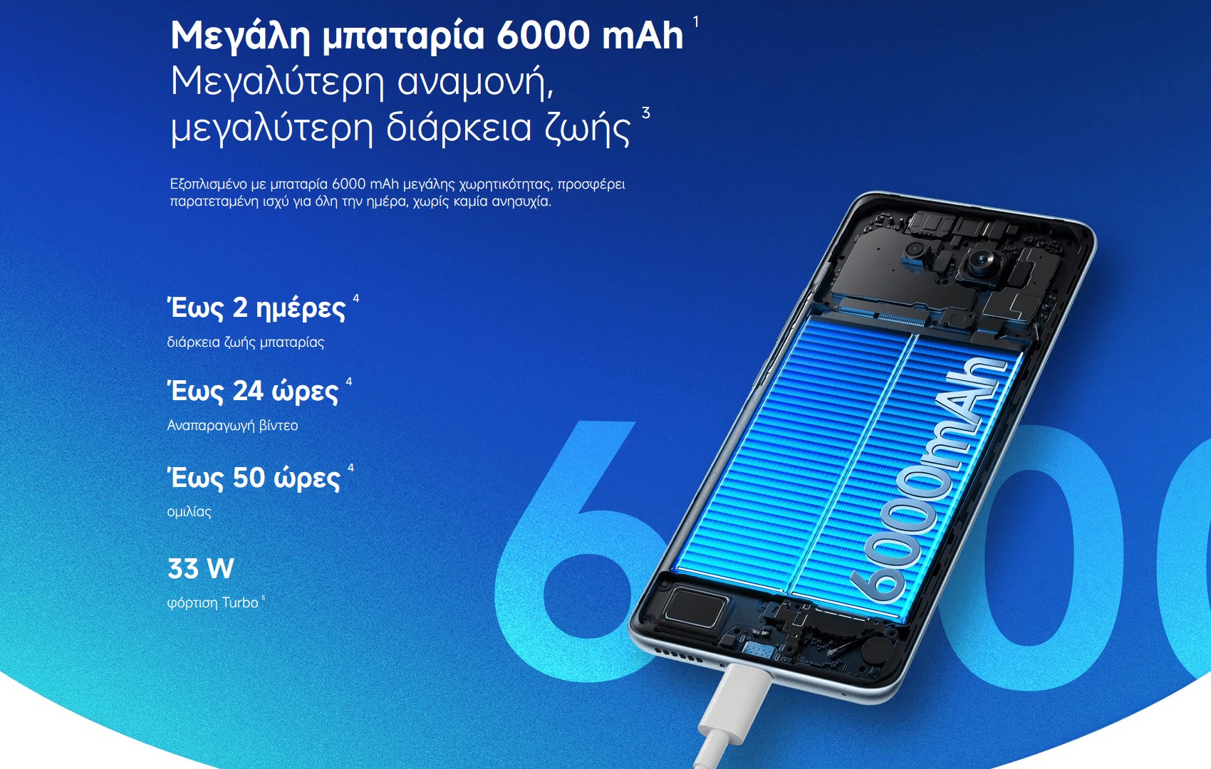 Μπαταρία : 6000 mAh Li-Po - 33W.