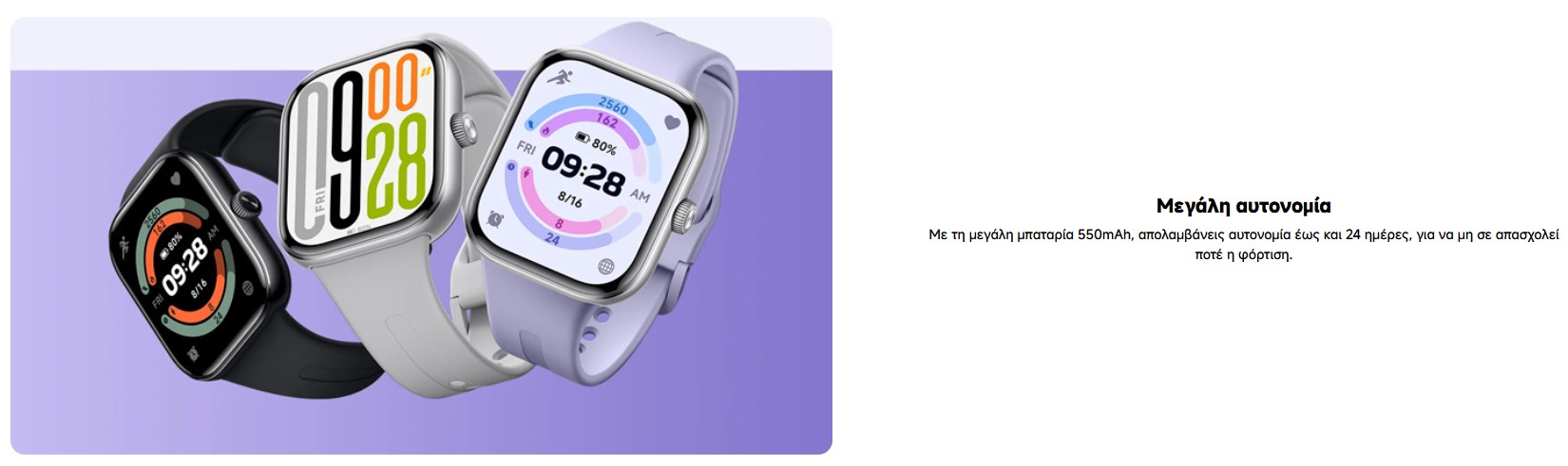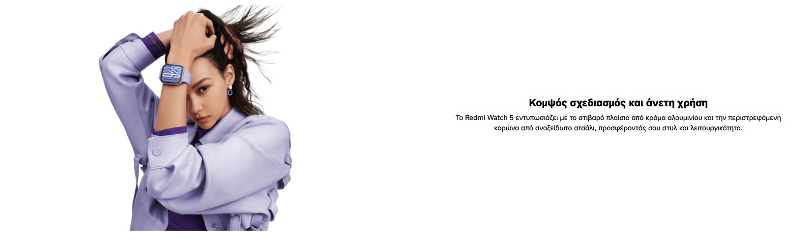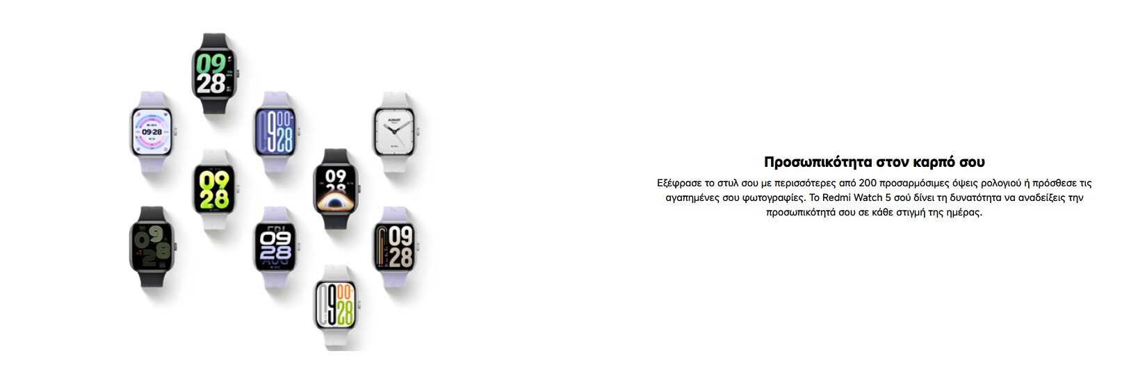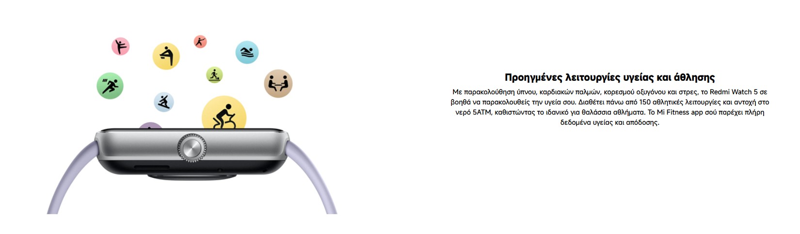 Το Redmi Watch 5 είναι ο ιδανικός σύντροφος για κάθε αθλητική σου δραστηριότητα. Με εντυπωσιακή AMOLED οθόνη 2.07", προσφέρει ευκρινή προβολή των δεδομένων σου, ακόμα και κάτω από έντονο ηλιακό φως. Η μεγάλη αυτονομία 24 ημερών σου επιτρέπει να προπονείσαι χωρίς άγχος για τη φόρτιση, ενώ οι πολλαπλές λειτουργίες άθλησης και παρακολούθησης υγείας καλύπτουν κάθε ανάγκη. Ένα smartwatch σχεδιασμένο να ακολουθεί τον ενεργό σου ρυθμό!