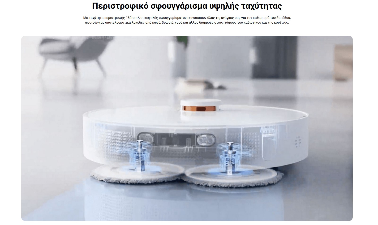 Επαναφορτιζόμενη σκούπα ρομπότ με ισχύ στα 75 W και δεξαμενή νερού εξαιρετικά μεγάλης χωρητικότητας 4 λίτρων.
