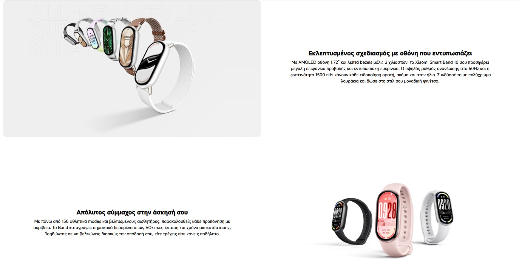 Το Xiaomi Smart Band 10 προσφέρει κομψό σχεδιασμό, μεγάλη AMOLED οθόνη 1,72" και προηγμένες λειτουργίες παρακολούθησης για άθληση, υγεία και ύπνο. Με αυτονομία έως 21 ημέρες, υποστήριξη για 150+ αθλήματα και αδιάβροχη κατασκευή, αποτελεί έναν αξιόπιστο σύντροφο για κάθε ημέρα.