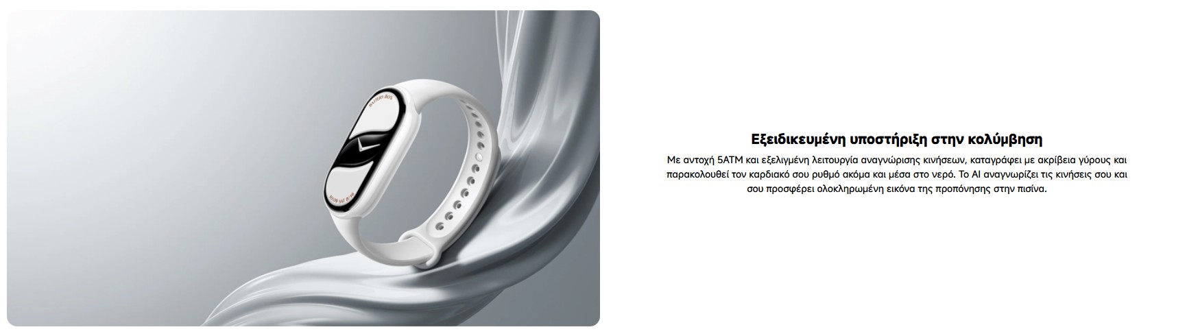 *Αδιάβροχο έως 50 μέτρα: Με βάση το πρότυπο δοκιμών ISO 22810 Πρώτη έκδοση: 2010, το Xiaomi Smart Band 10 έχει πιστοποιηθεί ως αδιάβροχο από την TUV SUD. Αριθμός έκθεσης αξιολόγησης αδιάβροχης προστασίας: 68.189.24.0798.01. Βαθμολογία αντοχής στο νερό 5ATM (ισοδύναμη με βάθος βύθισης 50 μέτρων). Αυτό σημαίνει ότι μπορεί να φορεθεί σε πισίνες, κατά την κολύμβηση κοντά στην ακτή και κατά τη διάρκεια άλλων δραστηριοτήτων σε ρηχά νερά. Δεν είναι κατάλληλο για χρήση σε ζεστά ντους, σάουνες ή κατά τη διάρκεια καταδύσεων. Φροντίστε να αποφεύγετε τις άμεσες επιπτώσεις από ταχείς ρεύματα. Η αντοχή στο νερό δεν είναι μόνιμη και μπορεί να μειωθεί με την πάροδο του χρόνου.