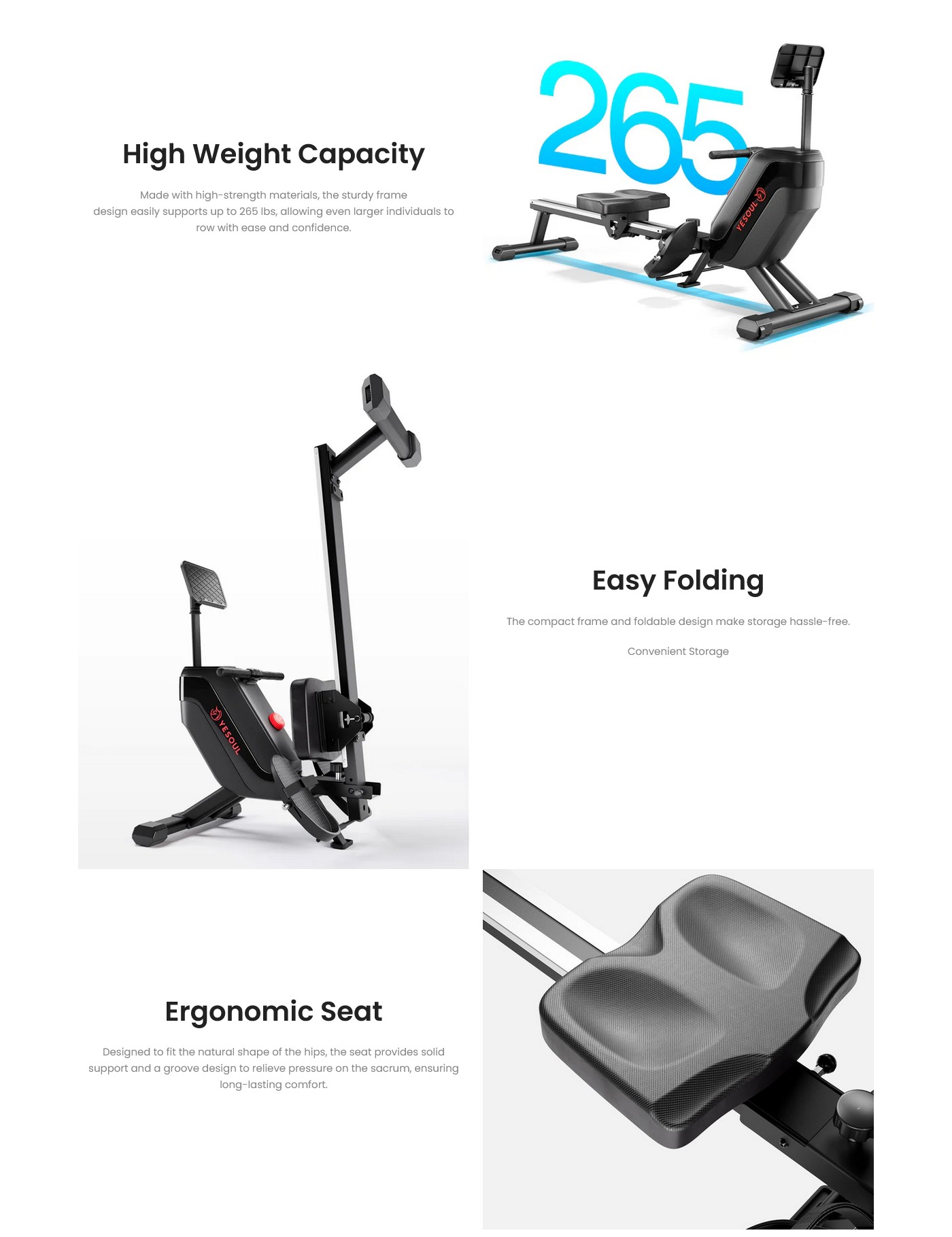 σχεδιασμός του πλαισίου υποστηρίζει εύκολα έως και 100 κιλά, επιτρέποντας σε ακόμη μεγαλύτερα άτομα να κωπηλατούν με ευκολία και σιγουριά.